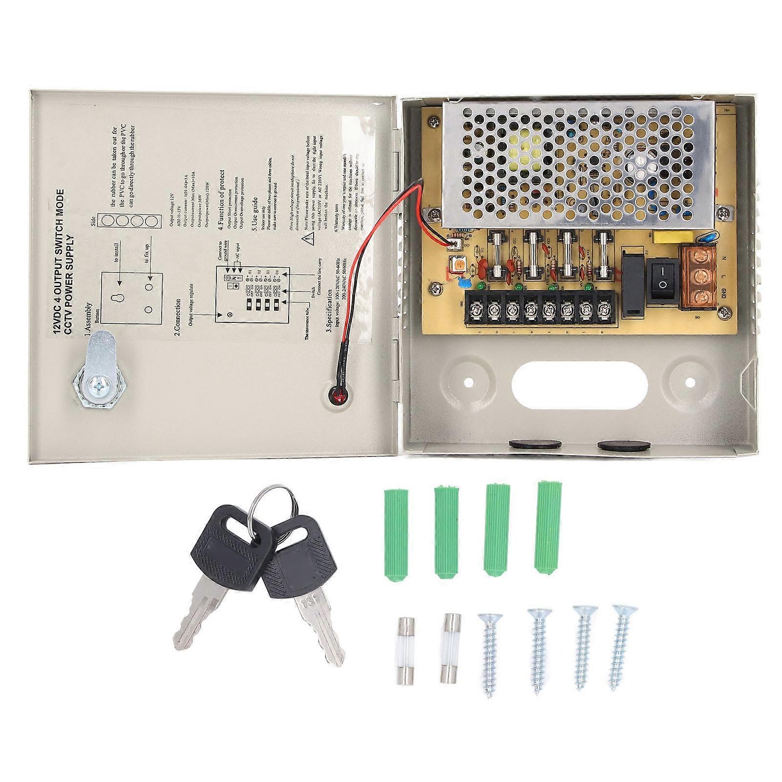 4 Channel 12V CCTV Power Supply 3A Fuse Closed Circuit TV Power Supply with Metal Box Lock 110V 220V