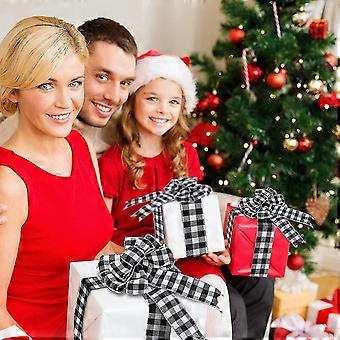 4 Rolls Black White Plaid Burlap Ribbon Gingham Ribbon Wired Plaid Christmas Wrapping Ribbons For Diy Gift Wrapping, Crafts Decoration, Floral Bows Cr