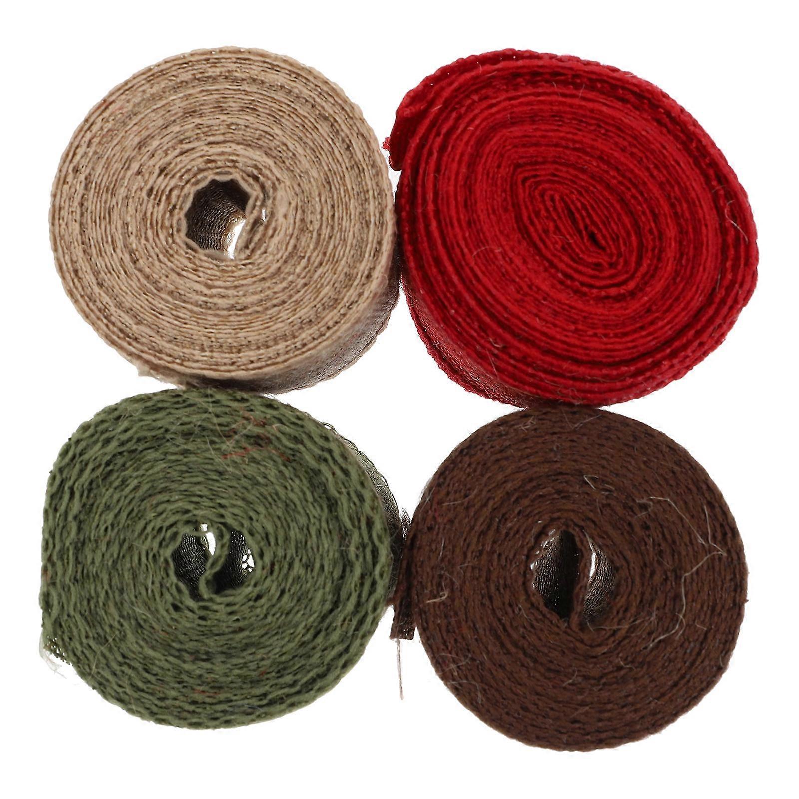 4 Rolls Christmas Wrapping Ribbon Wide Green Coffee Burlap Ribbon for Gift Boxes, DIY Wreaths, Bowknots, Holiday Crafts & Decorations