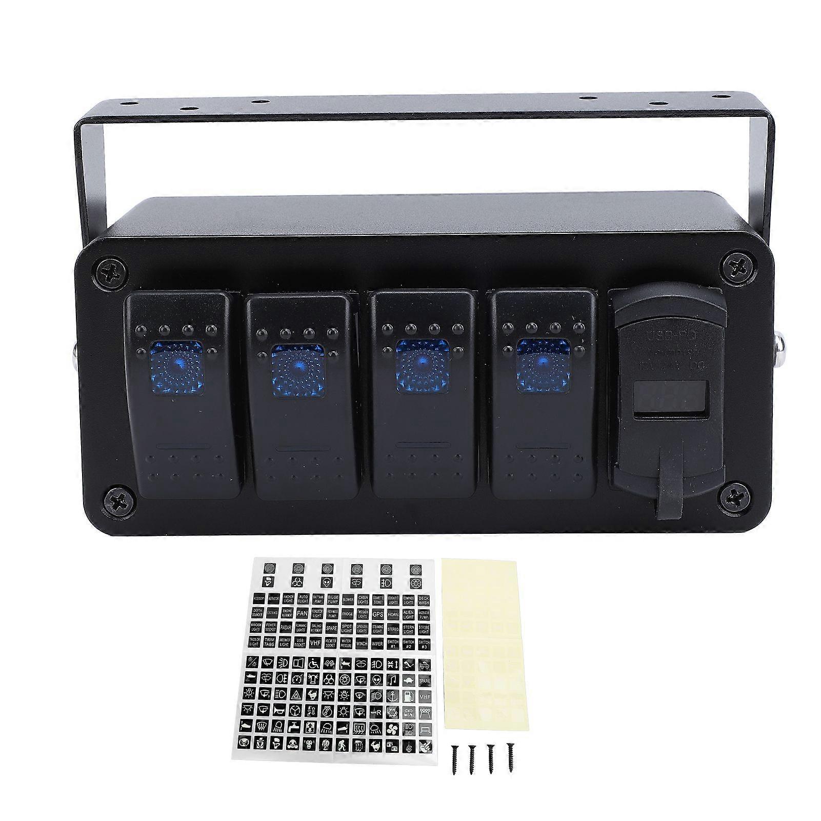 4 Gang Rocker Switch Panel with PD Type C QC3.0 USB Charger Waterproof Universal Fit for Car Truck Boat RV UTV ATV Blue Light