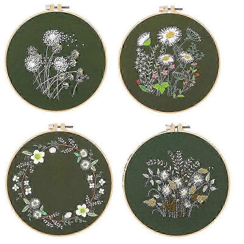 4 Sets Hand Embroidery Kit for Beginners Adults , Embroidery Kit Includes Flower, Hoop, Color Threads, Tools