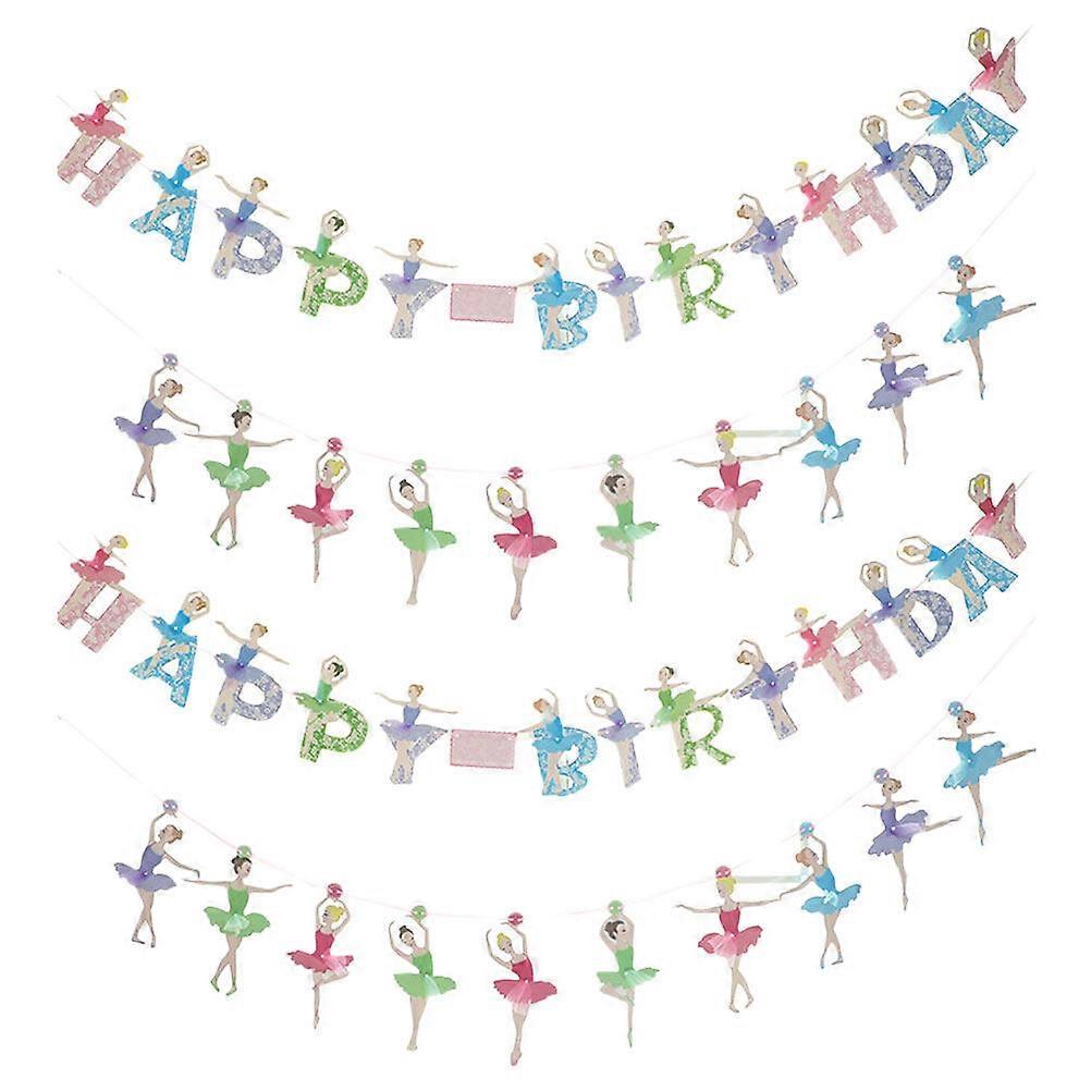 4 Sets of Ballerina Girls Birthday Party Decorations Happy Birthday Banner Hanging Decor