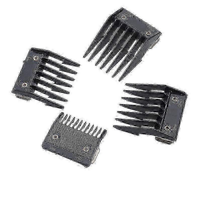 These fit all standard full sized for clippers.Round teeth will not hurt the scalp and can glide through hair quickly and efficiently for a smooth, time saving finish.Great for adding additional length and styles during your grooming, clipping, and trimming experience.Necessary tool for hair cutting and hairdressing.Colour: BlackMaterial: Plastic and MetalSize: 3/6/9/12mm Contents:4 x caliper with iron Only the above content, other are not included.Note: Light and different displays may the color of the item in the a little different from the real thing. The measurement allowed error is 1-3cm.