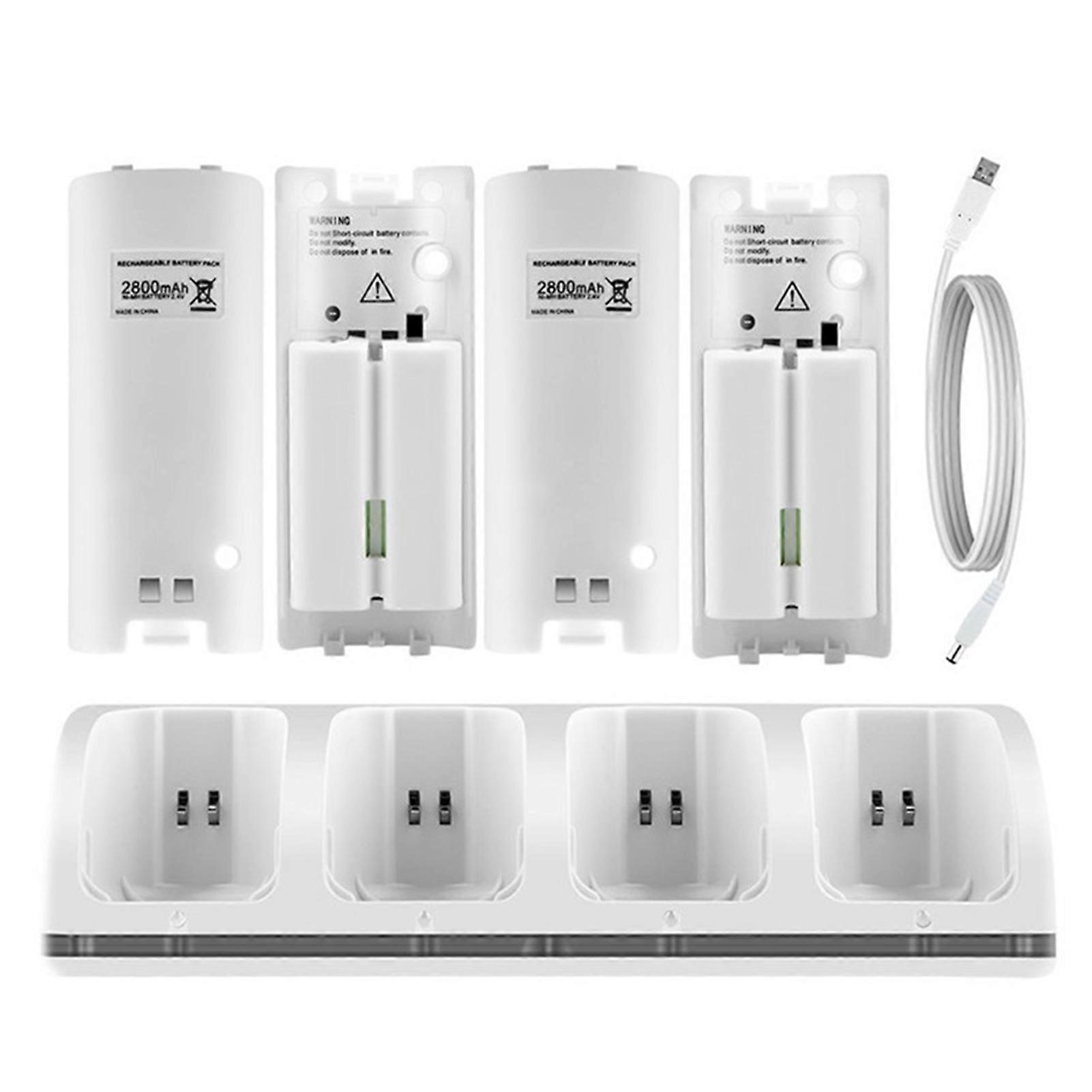 Made of premium ABS material, the game console remote controller is durable to use. Designed with 4 ports, it can charge for 4 joysticks simultaneously. Over load protection is provided, which is safe to charge. With large capacity battery, it has long standby time. It has LED indicators, red for charging and blue for fully charged. It is compatible for Nintendo Wii U/Wii. Item Name: Gamepad Charger Material: ABS Battery Capacity: 2800mAh (Included) Input Voltage: DC 5V Output Voltage: DC 2.8V Output Current: 350mA Compatible: for Nintendo Wii U/Wii Features: 2 Ports, Safe, Game Console Accessory Size: 19cm x 5.58cm x 5.58cm/7.48inch; x 2.2inch; x 2.2inch; (Approx.) Notes: Due to the light and screen setting difference, the item 39;s color may be slightly different from the pictures. Please allow slight dimension difference due to different manual measurement. Package Includes: (Gamepad Not Included) 1 x Gamepad Charger 4 x Batteries 1 x Charging Cable