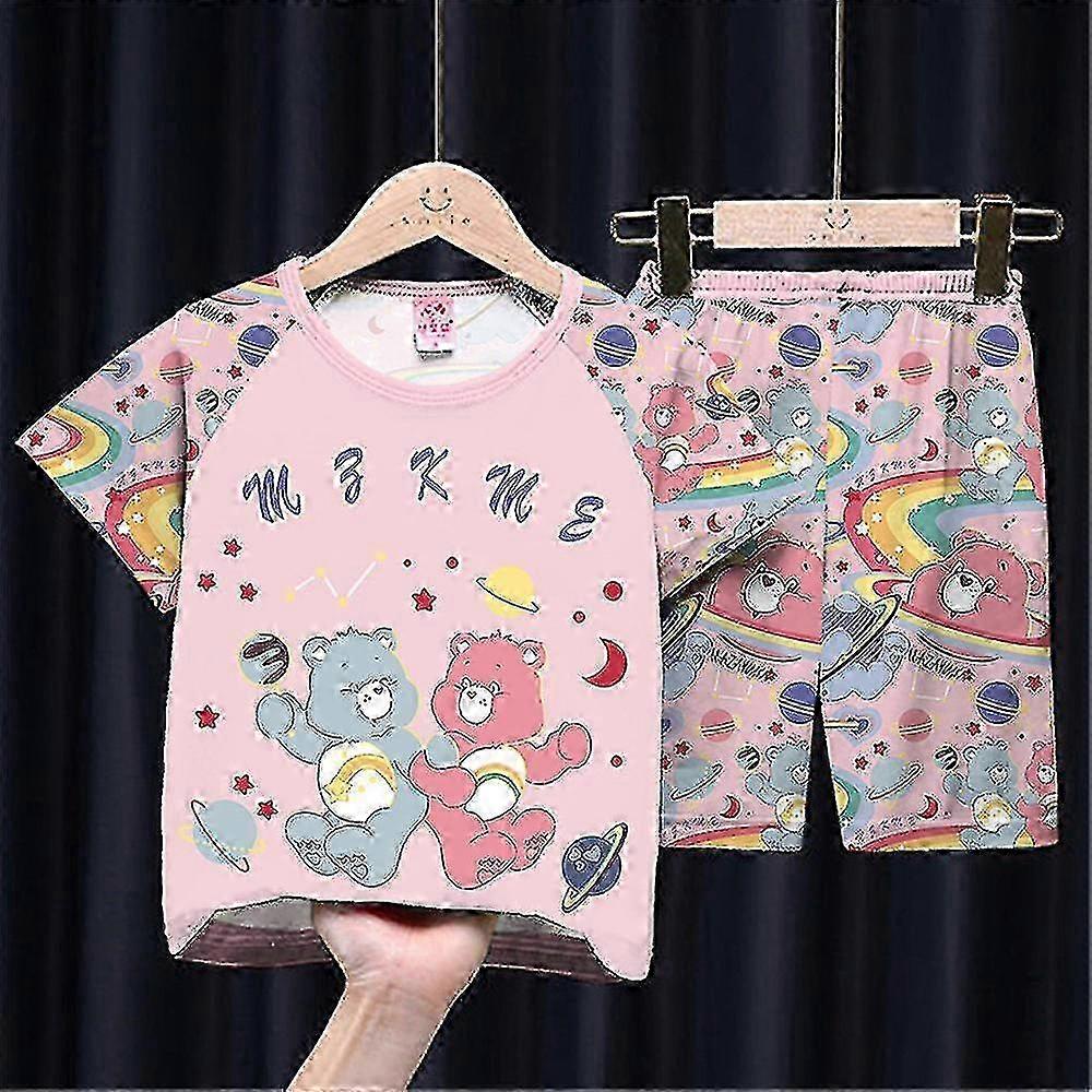 4-12 Years Girls Care Bears Cartoon Pajamas Pjs Set Short Sleeve Tops Shorts Sleepwear Nightwear Loungewear