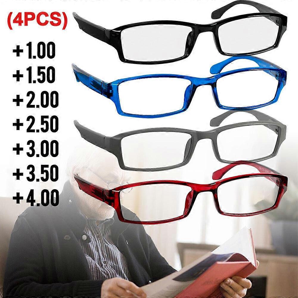 4 Pairs Square Frame Reading Glasses Spring Hinges Readers +1