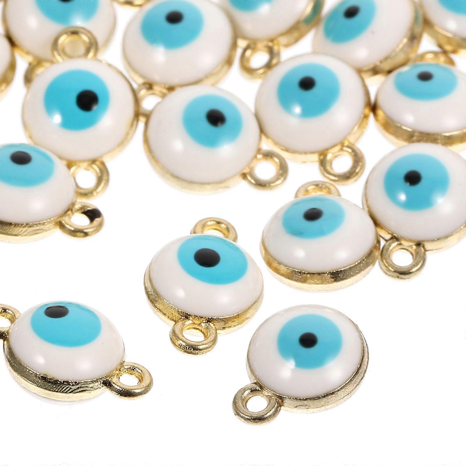 40Pcs Evil Eye Charms DIY Jewelry Making Pendant Charms For Artisans 0.6X0.6X0.3CM White Alloy Decoration