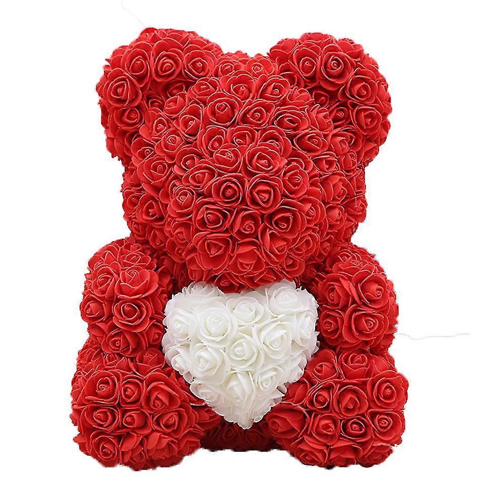 40cm Rose Bear With Heart Artificial Flowers Rose Bear For Women Valentine's Wedding Birthday Christmas Gift Home Decoration