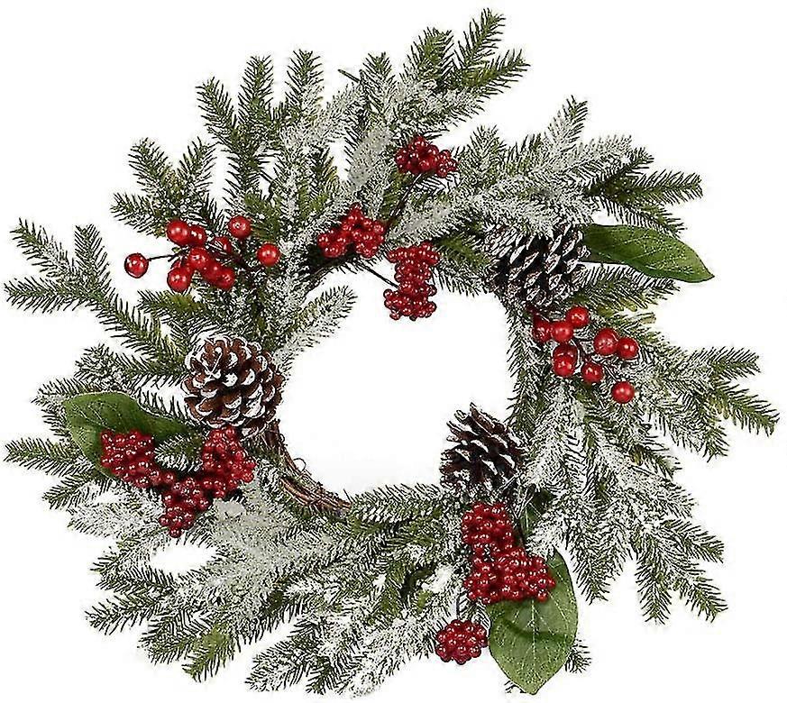 40cm / 15.75 Inch Decorated Pe Christmas Wreath Pine Cone Red Fruit With White Glitter, 1pc