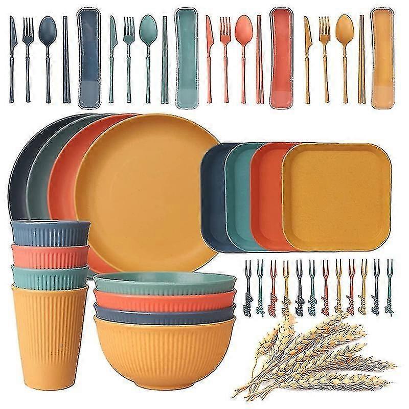 44pcs Unbreakable Dinnerware Sets For 4 People, Camping Plates And Bowls Set, Picnic Dinner Sets, S