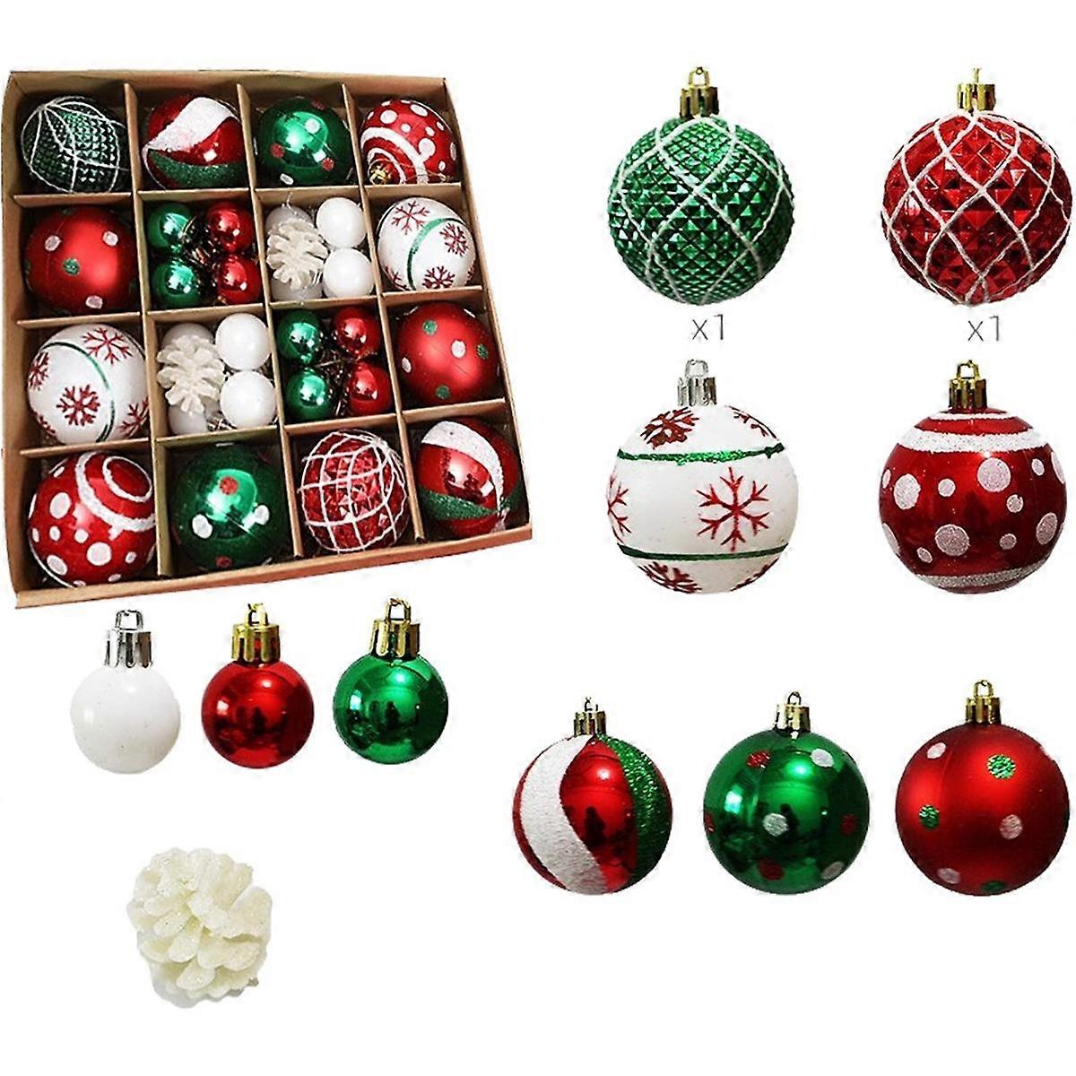 44PCS Christmas Ball Ornaments Shatterproof Christmas Baubles Shiny Printed Decorative Balls Christ