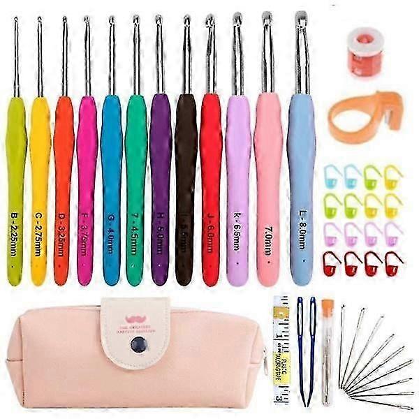45-piece set with crochet hooks, markers, measuring tape - Crochet set multicolored Multicolored