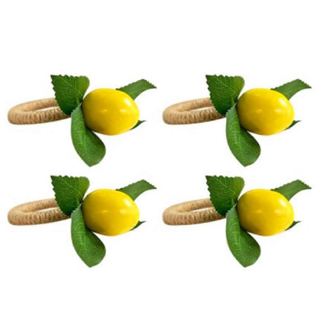 4/6Pcs Napkin Rings Faux Yellow Lemon with Vine Leaf Serviette Holder Decoration