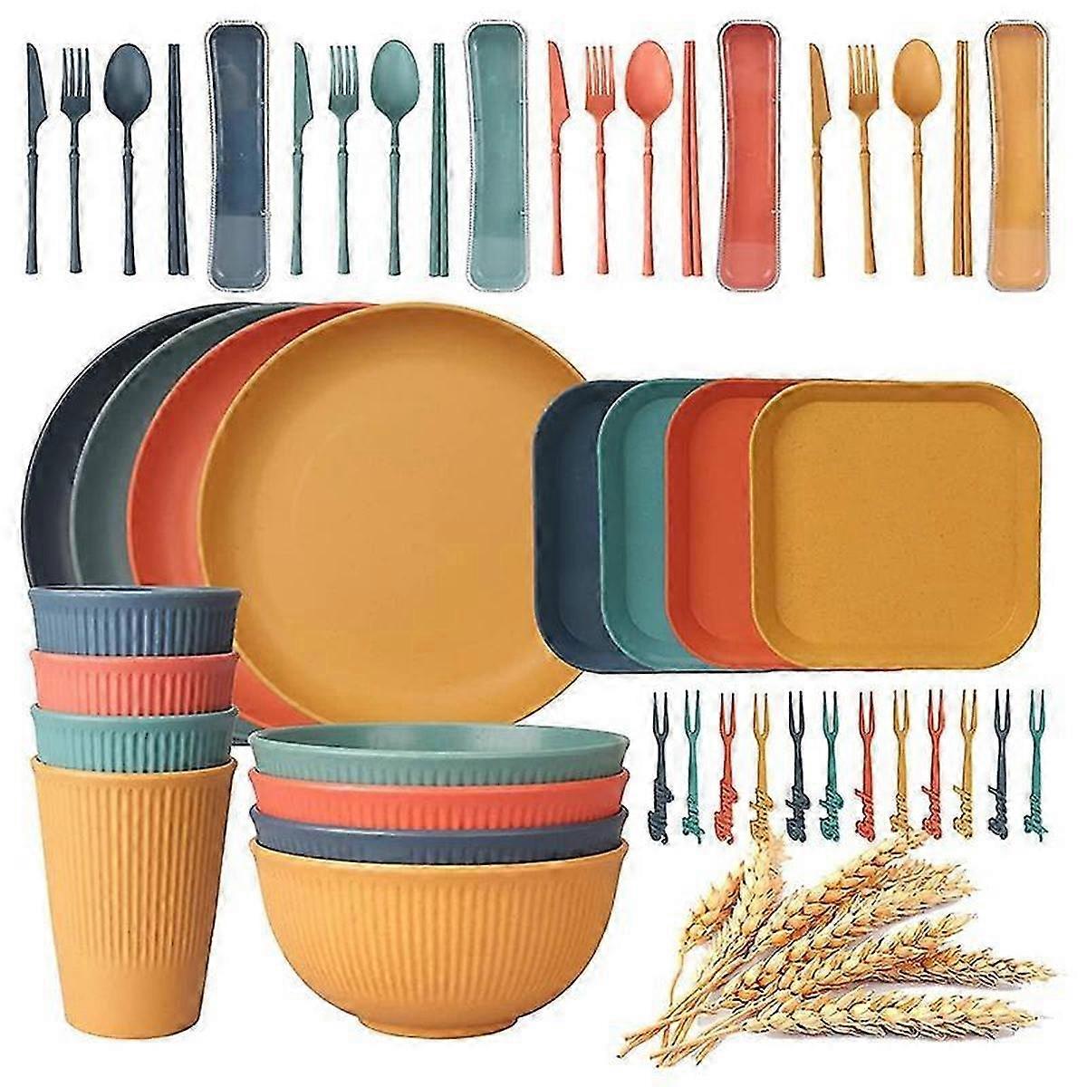 48Pcs Dinnerware Sets suitable for 4 People, Camping Plates and Bowls Set