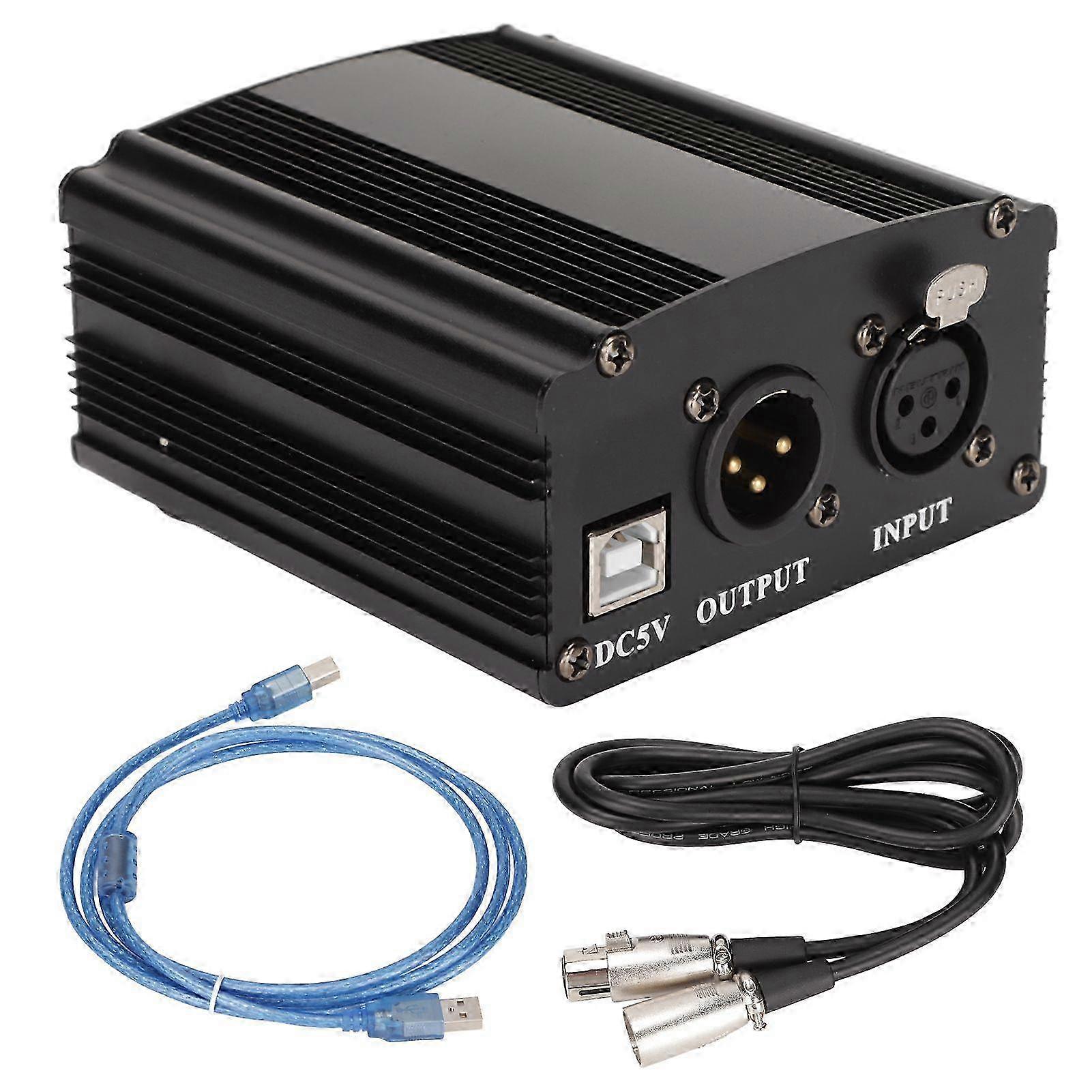48V Phantom Power Supply 1 Channel Condenser Mic Power Supply with XLR 3 Pin Cable and USB Cable