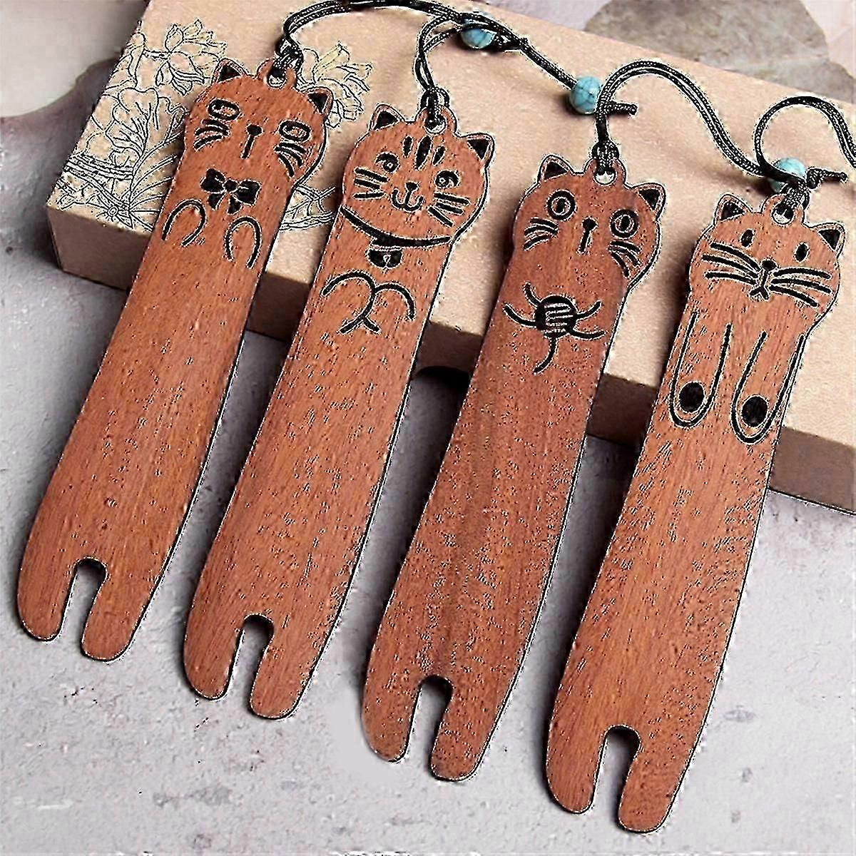 4PCS Bookmark, Funny Book Mark for Book Lover, Wooden CatBook Marker Gifts for Reader Lovers