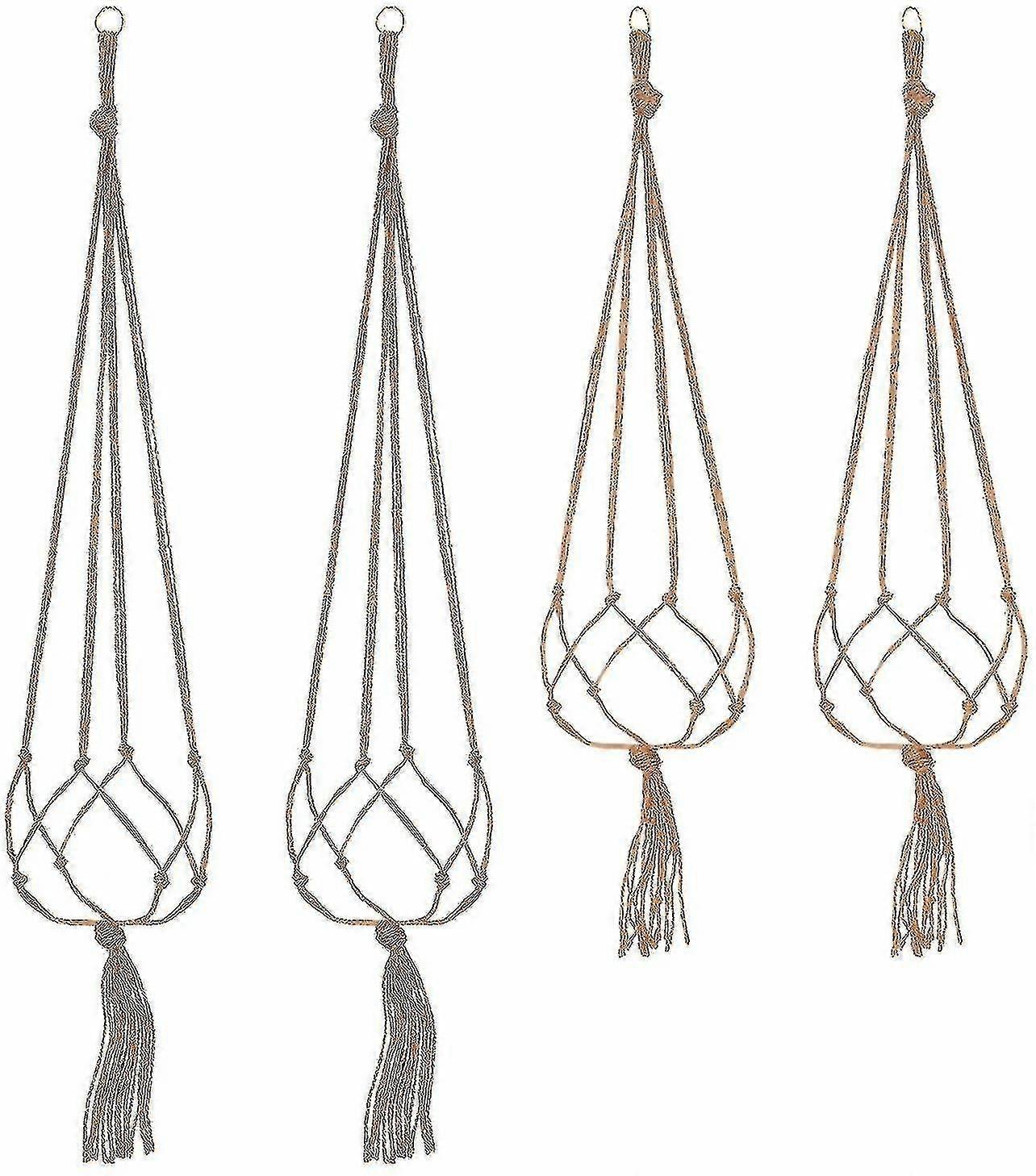 4pcs Hanging Rope Macrame Plant Pot Holder Hanging Plant Hanger Garden Decoration-2pcs 105 Cm And 2pcs 90 Cm