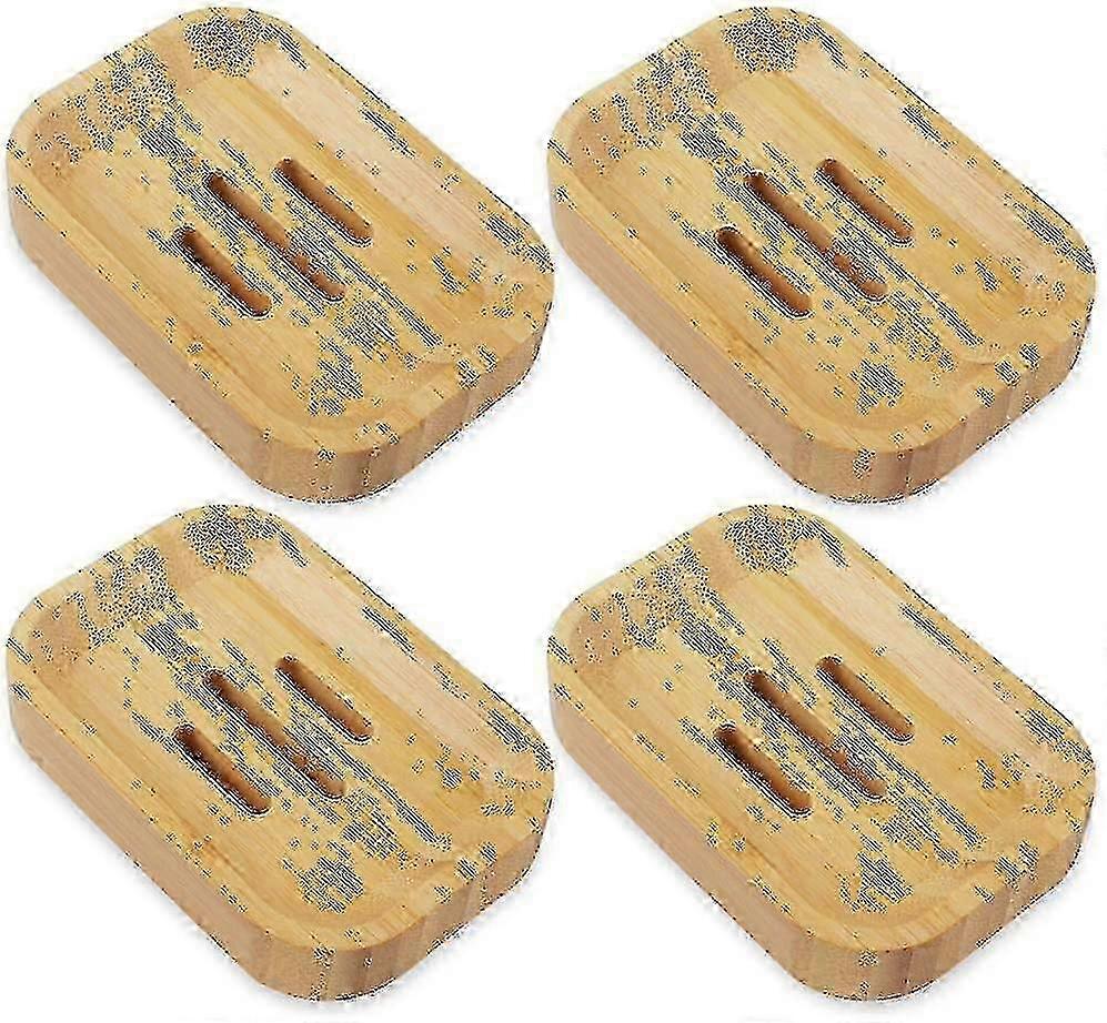 4pcs Wooden Soap Dish, Natural Bamboo Soap Box Soap Storage Box - Bathroom