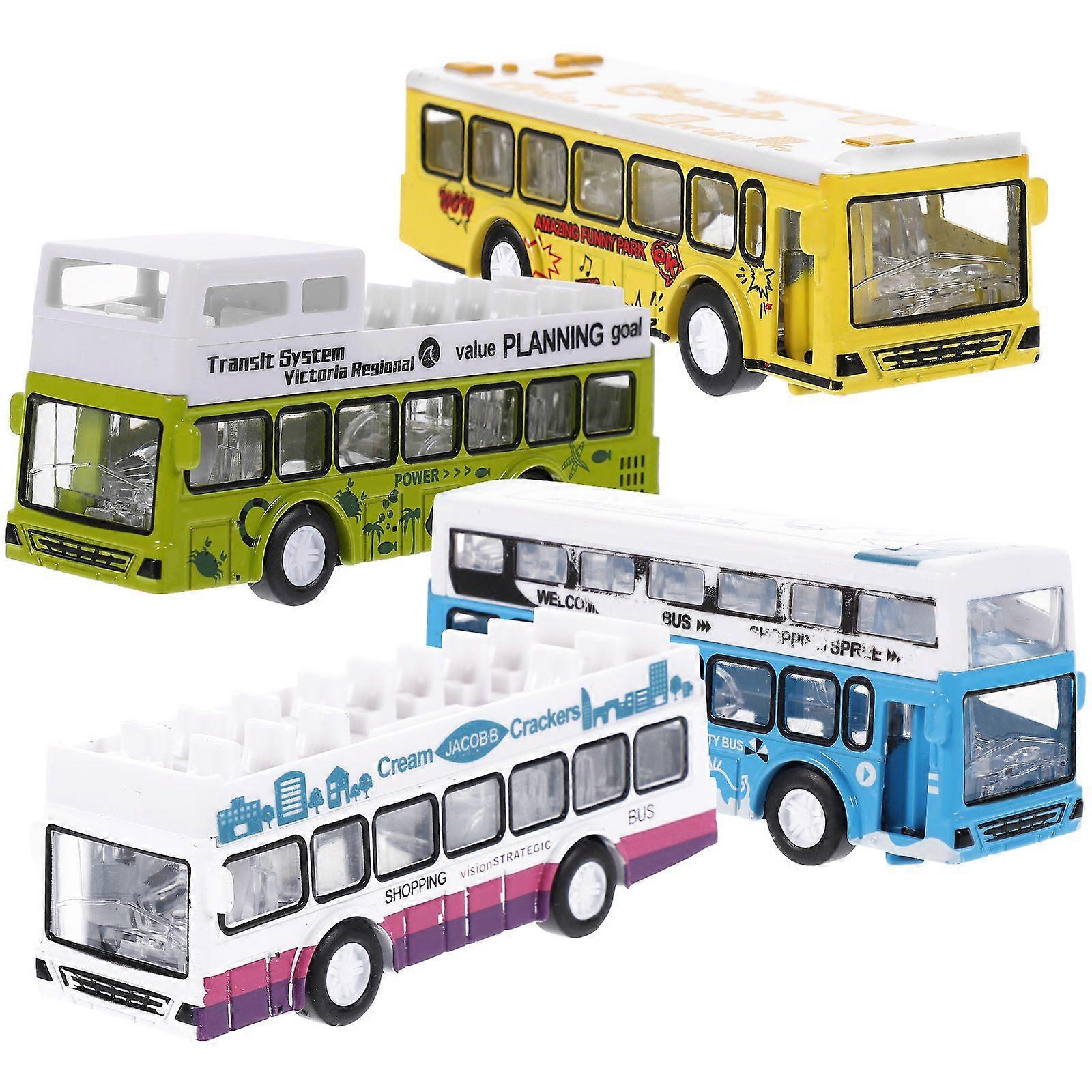 4pcs Kids Bus Toy Bus Model Pulling Back Car Toy Simulation Bus Toy Gift 1:60