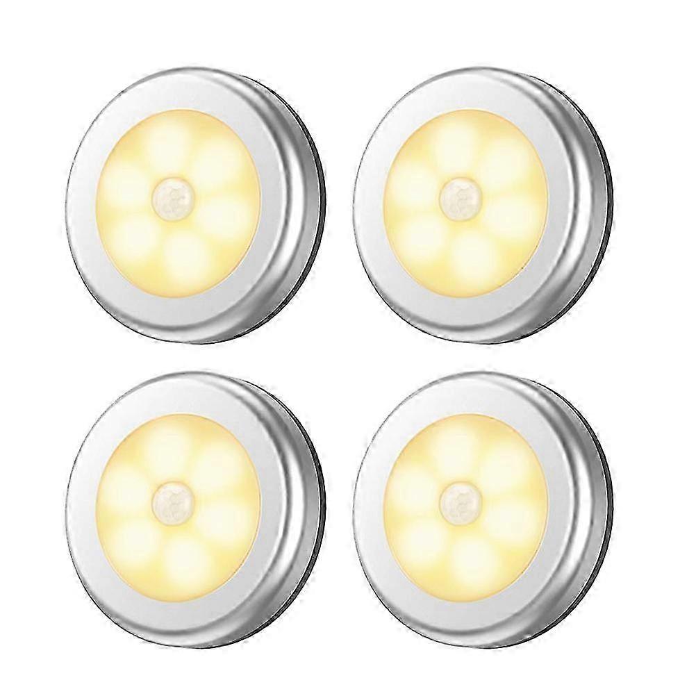 4pcs Motion Sensor Night Light for Kitchen, Battery-Free, Silver/Warm White (8X8X1.7CM)