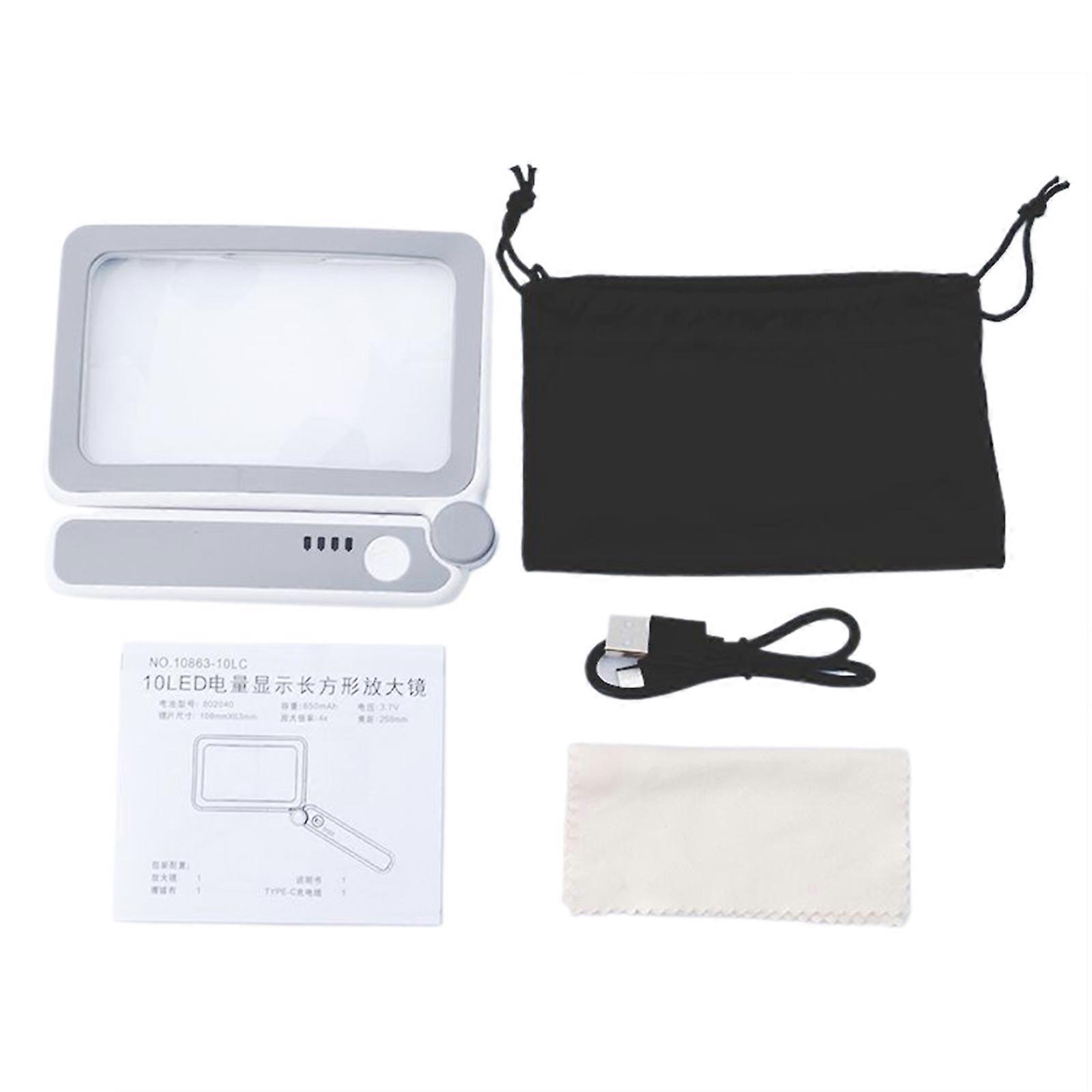 Features: Our handhelds LED magnifying glass is a practical tool that provide clear and detailed magnification. Its foldable designs and lightweight constructions , it convenient for use on the movings. It magnifies up to 4times,whether you're reading fine printing, working on intricate crafts, and examining small details, this magnifying glass ensures clear views. Our handhelds magnifying glass with light is equipped with 10 LED light, and 3 gear bright can be adjusted, so that the visual field of lens have better lighting effect, and provide good lighting under low light conditions. It is more convenient to use. The magnifying glass is crafted with ergonomics handle for comfortable grip, reducing hand fatigue during extended use. Specifications: Material:ABS,Acrylic Lighting: 10 LED light Magnification:4Times Size:Approx.27cm/10.63''x12cm/4.72'' Power:802040 650mAh 3.7V Battery Package Includes: 1x Handhelds Magnifying Glass note: Please allow 1mm errors due to manual measurement. Due to the differences between different monitors, the picture may not reflect the actual color.