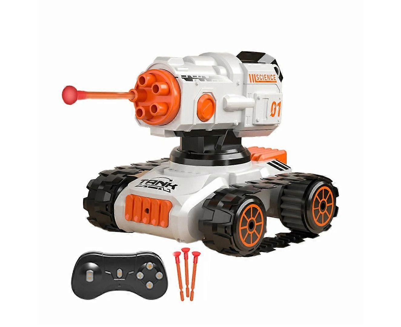 4WD Tank Toy Off-Roader Remote Control Car with 360 Degree Rotating Soft Bullets Shooting Cannon-White