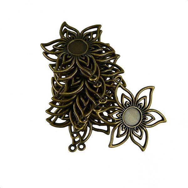 4x10 Piece Filigree Flower Pendant Cabochon Bezel Setting DIY Charm Connector