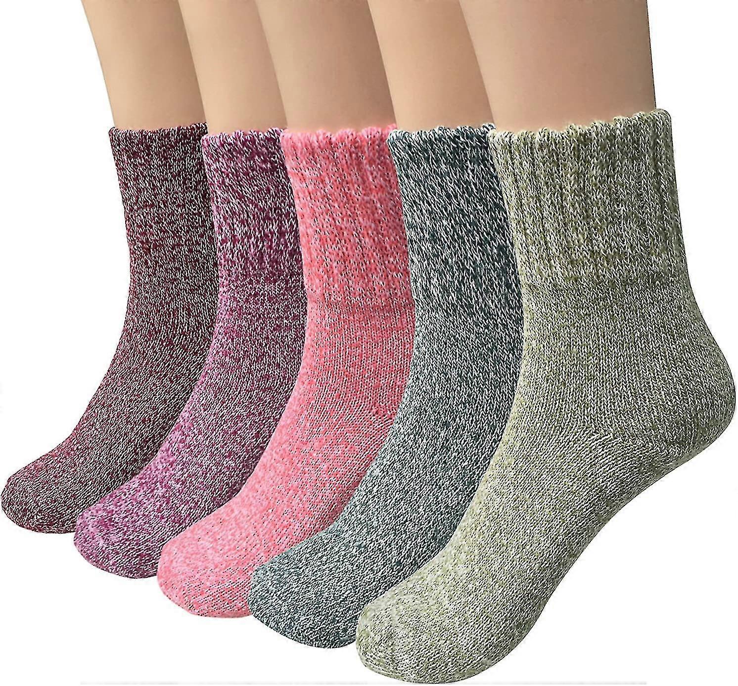 5 Pairs Womens Wool Socks Thick Knit Vintage Winter Warm Cozy Crew Socks Gifts