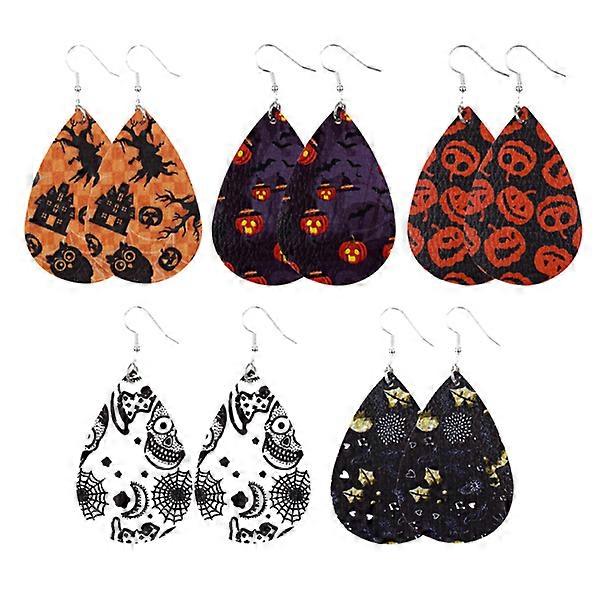 5 Pairs of Halloween Leather Earrings Water Drop Shaped Ear Dangle Women Dangler Ear Jewelry Assorted Color