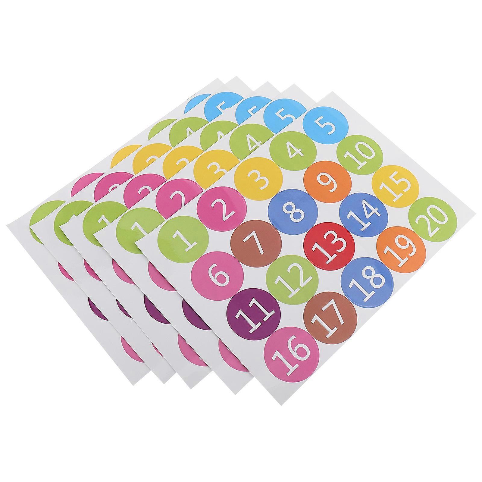 Colorful Round Number Paster Waterproof Self-Adhesive Removable Decorative DIY Handmade Craft Projects Gift Wrapping 27.50x21.50x0.10cm 5 Sheets