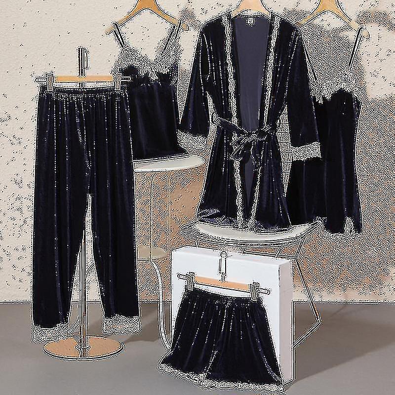 5 Piece Pajamas Women's Autumn Winter Golden Velvet Sexy Nightgown With Chest Pad Suspenders Morning Gown