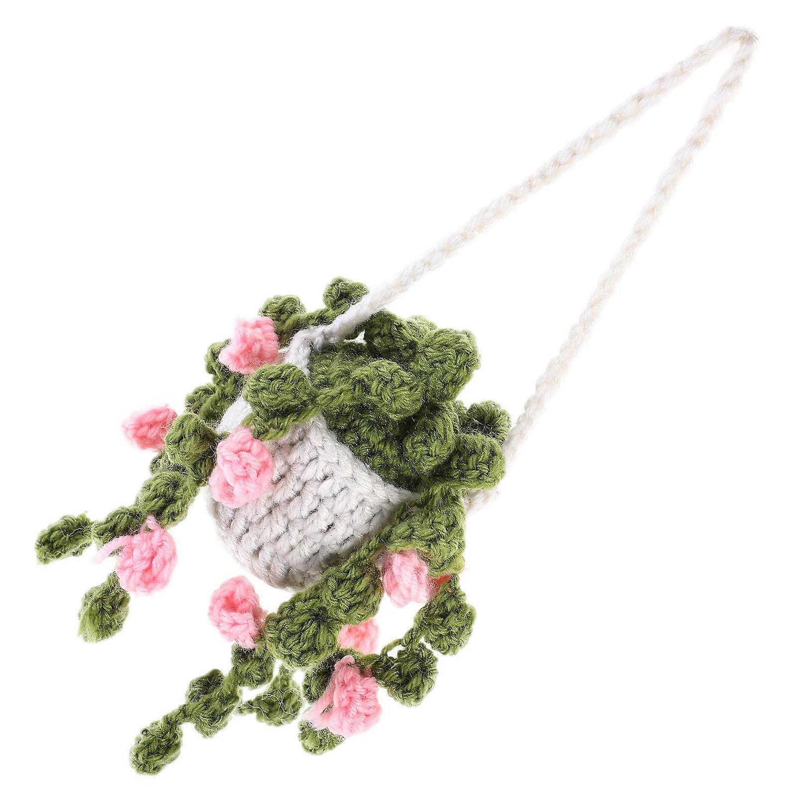 5Pcs Crochet Car Hanging Ornament for Decor with Pink Woolen Yarn