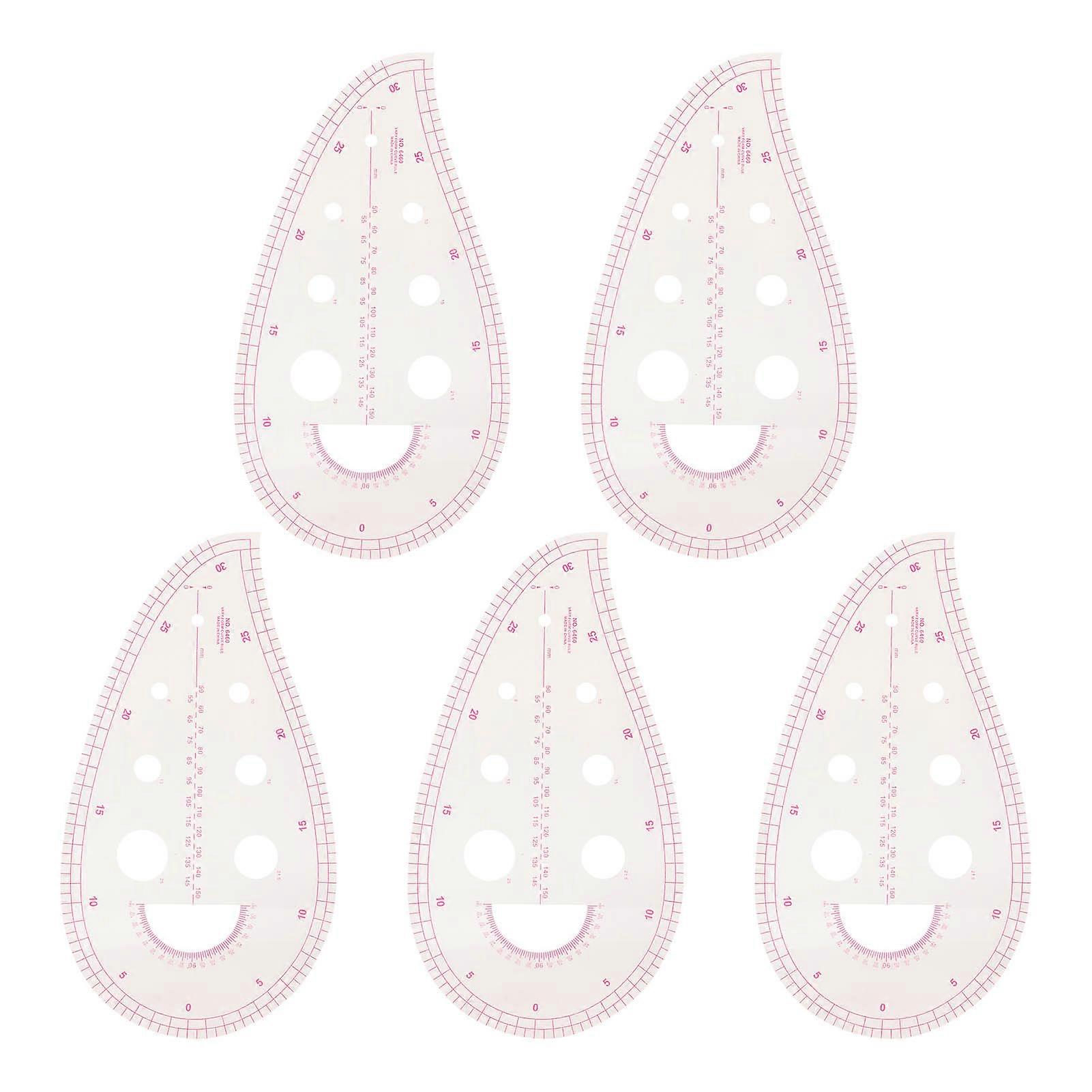 5Pcs French Curve Ruler 11.4in 11.8in 7 Round Holes Transparent Plastic Pattern Making Ruler for Sewing Knitting Craft