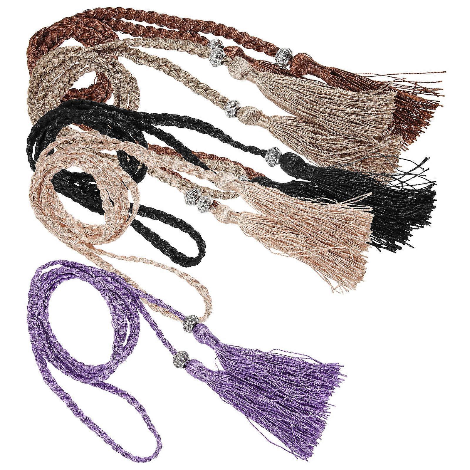 5pcs Women's Woven Waist Belts with Tassel Design – Lightweight, Comfortable & Stylish Accessory for Skirts & Dresses