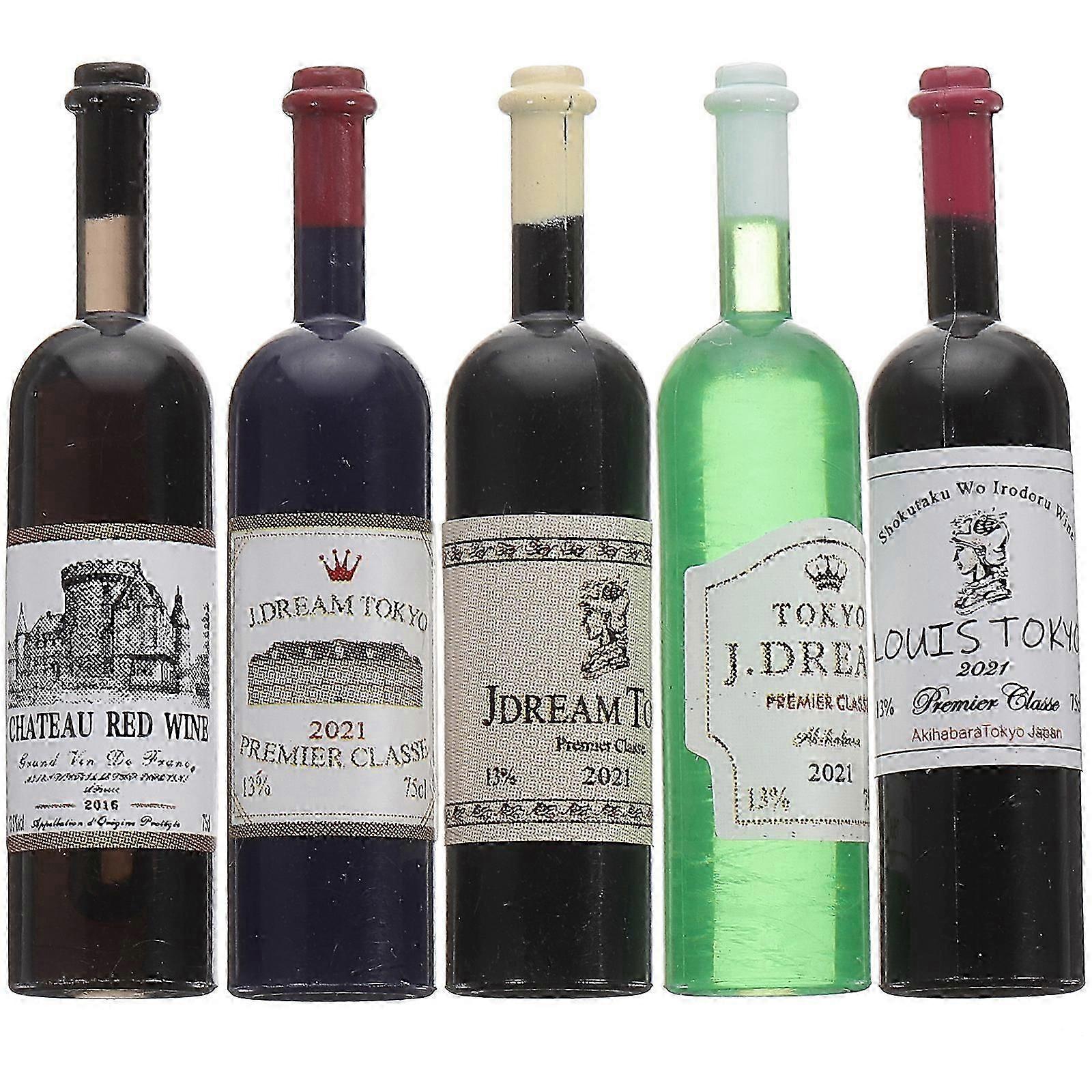 5pcs Doll House Mini Wine Bottles Mini Plastic Red Wine Bottles Toys Doll house Miniatures (1:12)