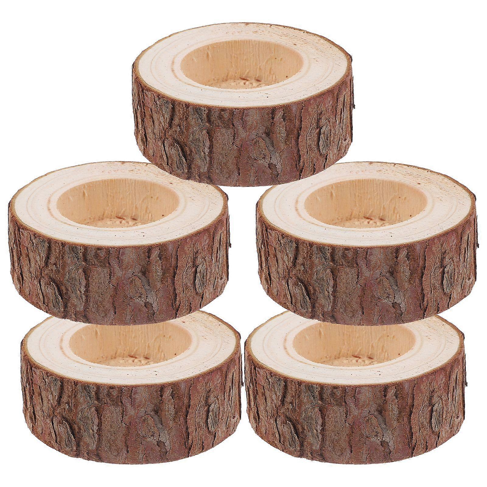 5Pcs Stump Candle Holders Wooden Candlesticks Candle Stand Photography Props