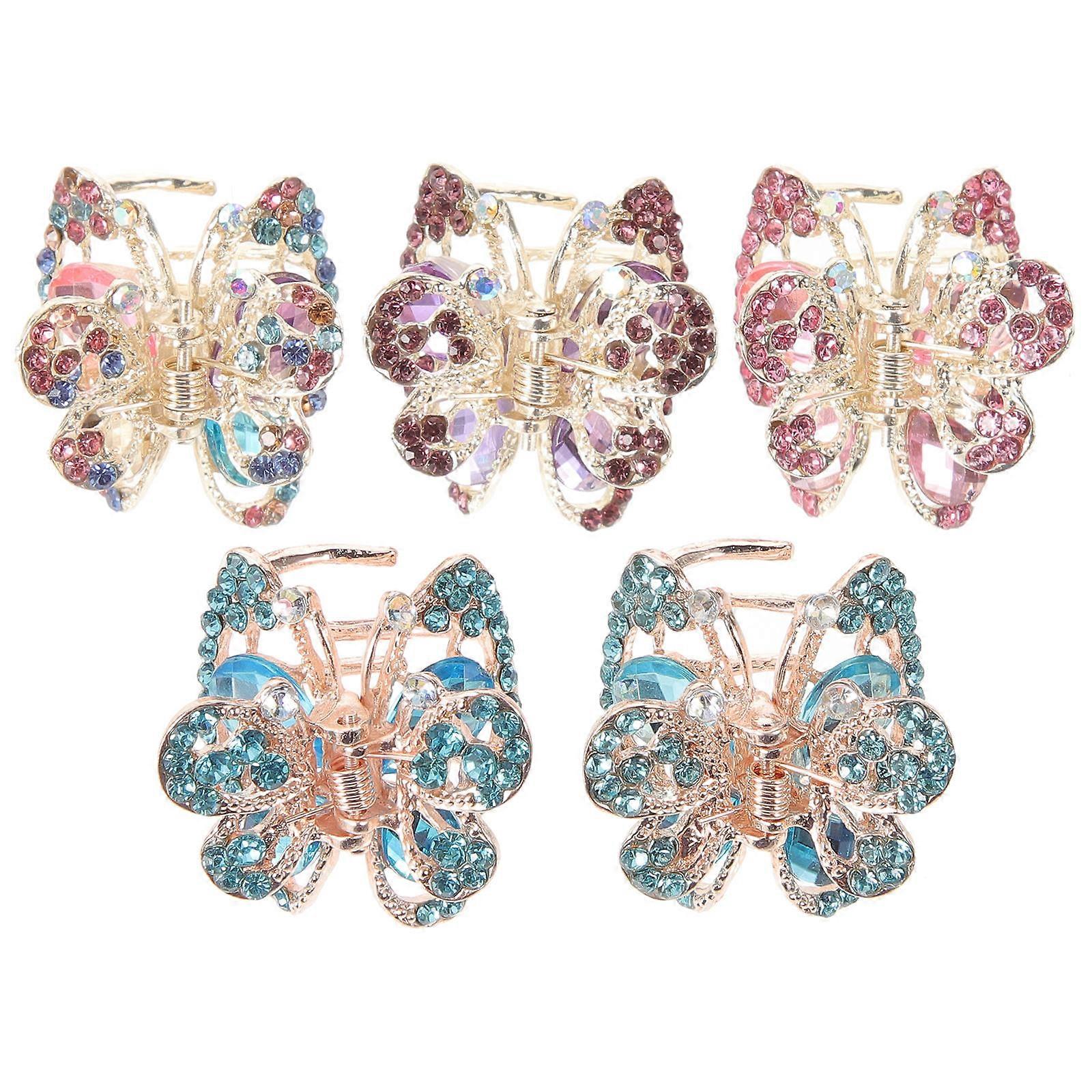 5PCS Rhinestone Hair Claw Clips for Kids Girls with Mini Alloy Barrette Grips Hair Accessories Random Style