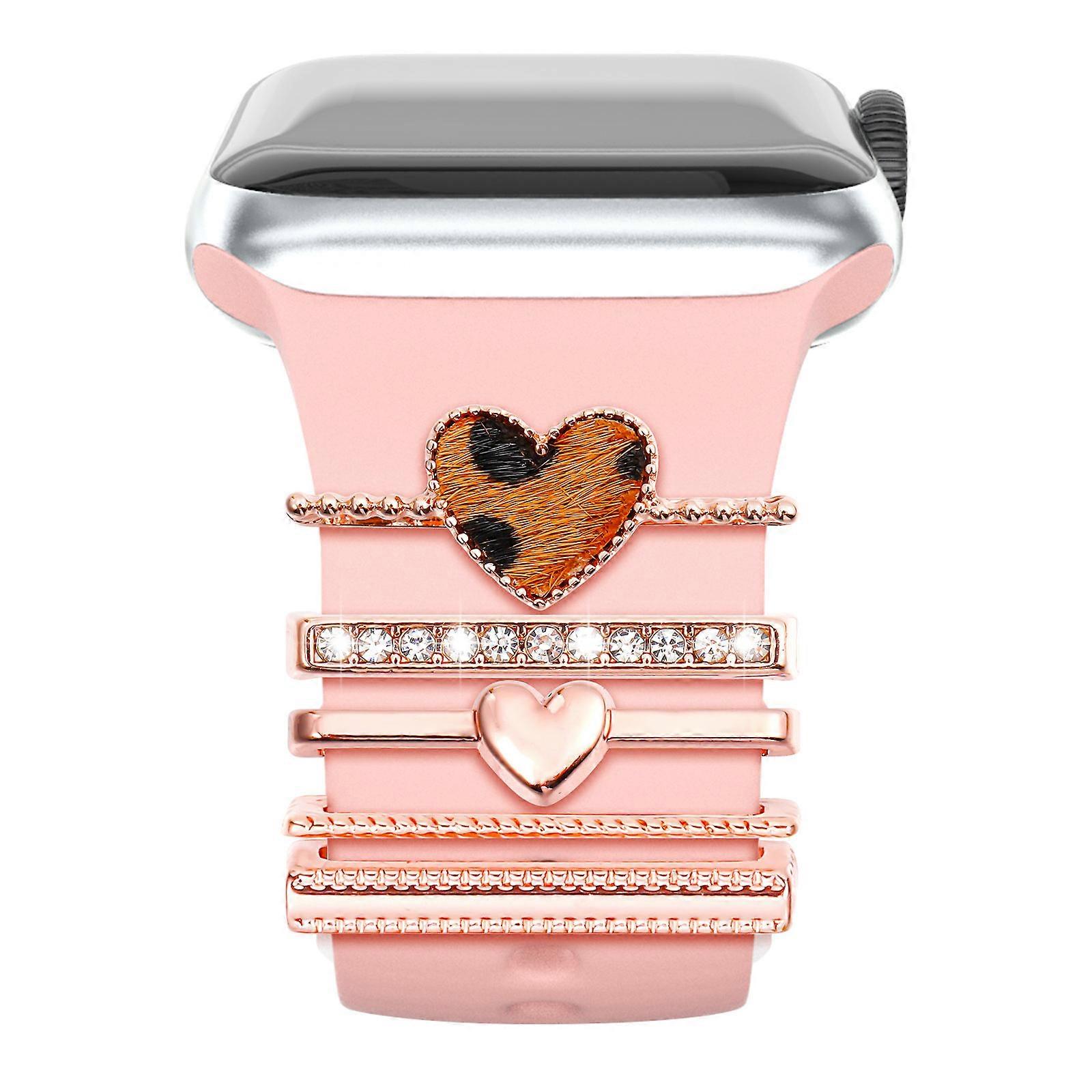 5Pcs Stylish Glitter Decorative Rings For Watch Charms Anniversary Holiday Pink Watchband Accessories