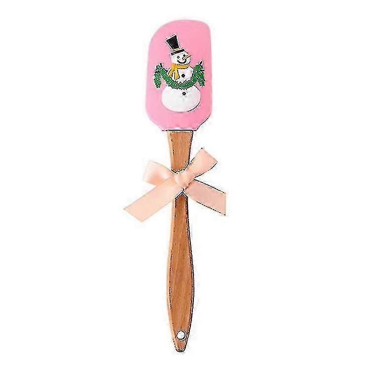 5pcs Butter Scraper Christmas Santa Pattern Long Silicone Scraper Food Grade Silicone And Wooden Handle Cooking Stirring Cream Butter Scraper For Baki