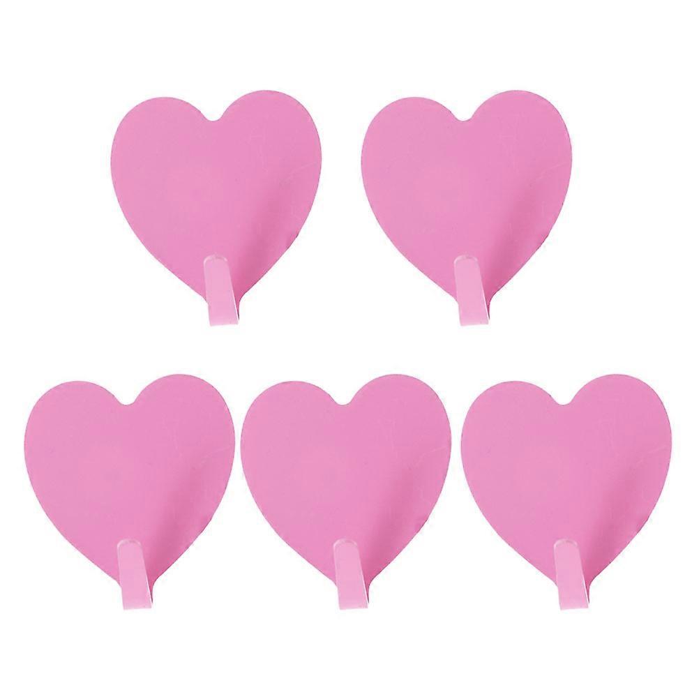 5Pcs Heart Shape Seamless Sticky Hook Stainless Steel Wall-mounted Coat Hat Hook for Home Office (Pink)