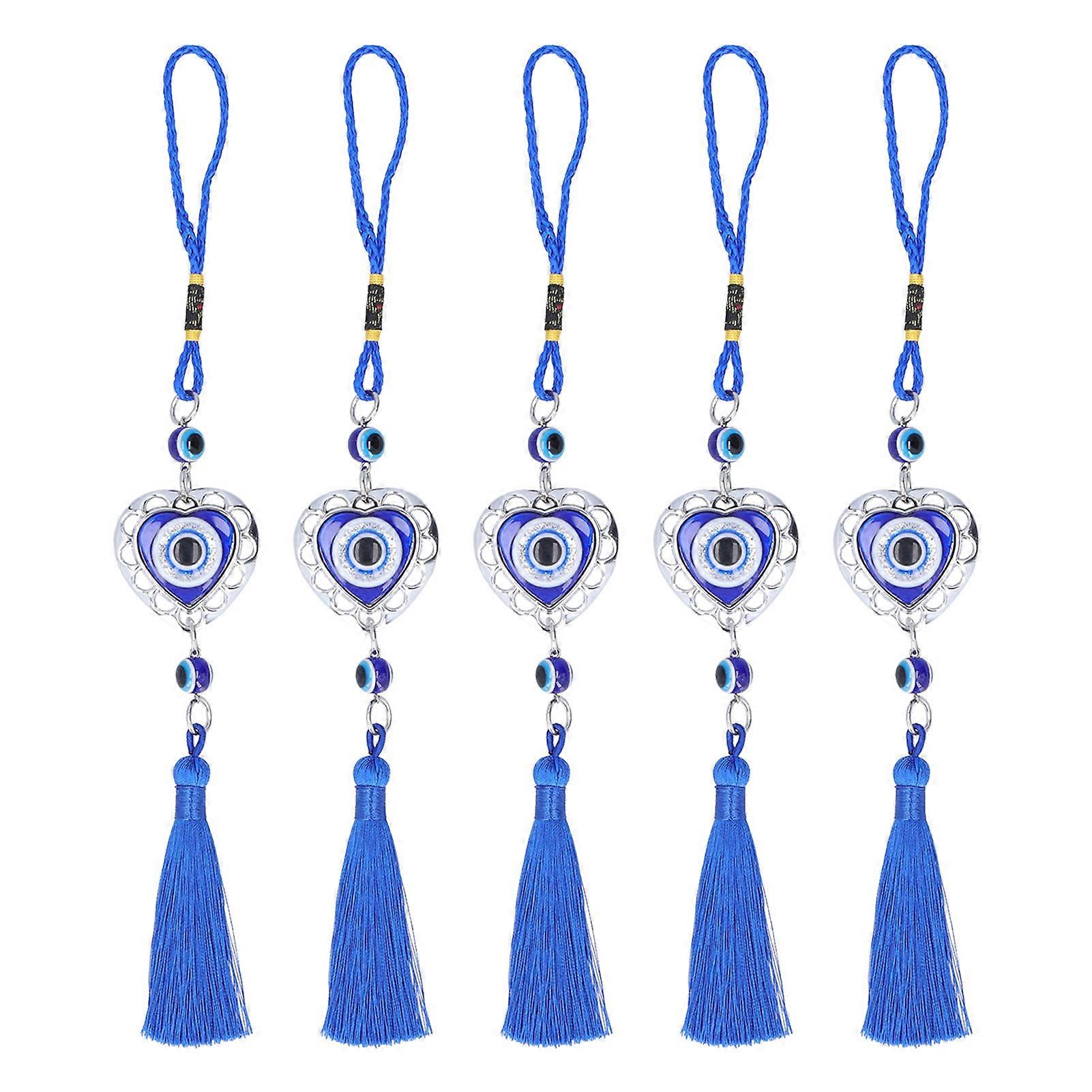 5Pcs Evil Eye Pendant Coloured Glaze Blue Tassel Exquisite Design Good Luck Evil Eye Decor for Room CarPeach Heart