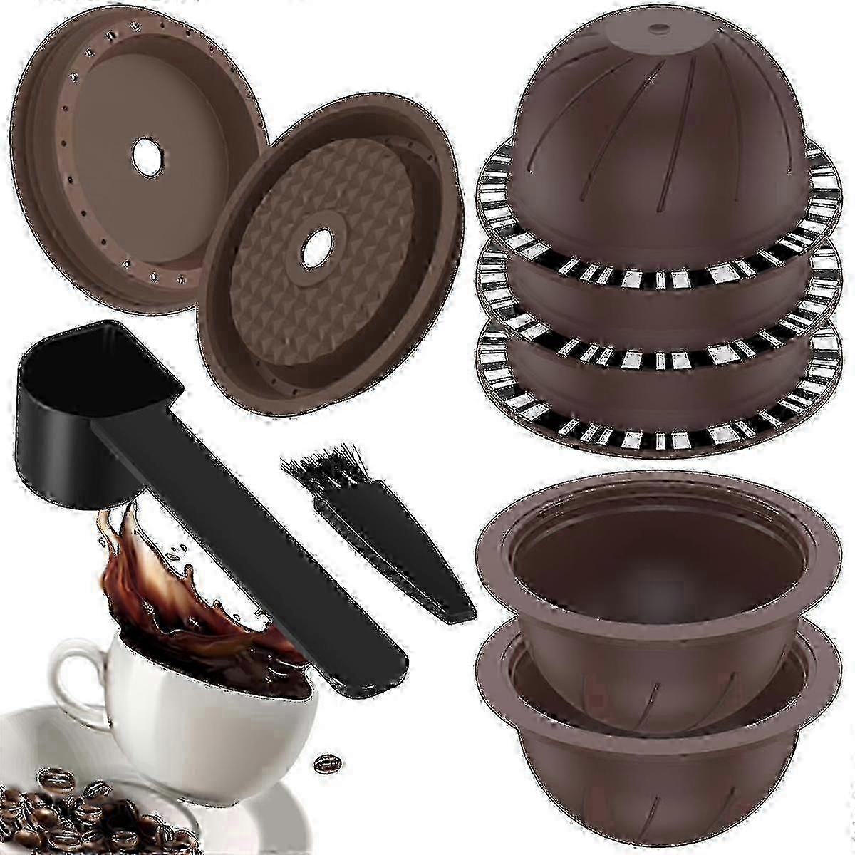 5Pcs Reusable Vertuo Pods for Machine, Coffee Capsule with 2 Silicone Lids 1 Spoon and Brush, (150Ml)