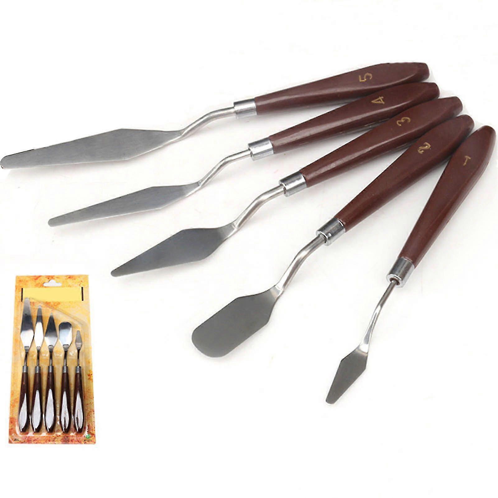 5pcs Oil Painting Scraper Set with Wooden Handle Stainless Steel Paint Spatula for Artists Students