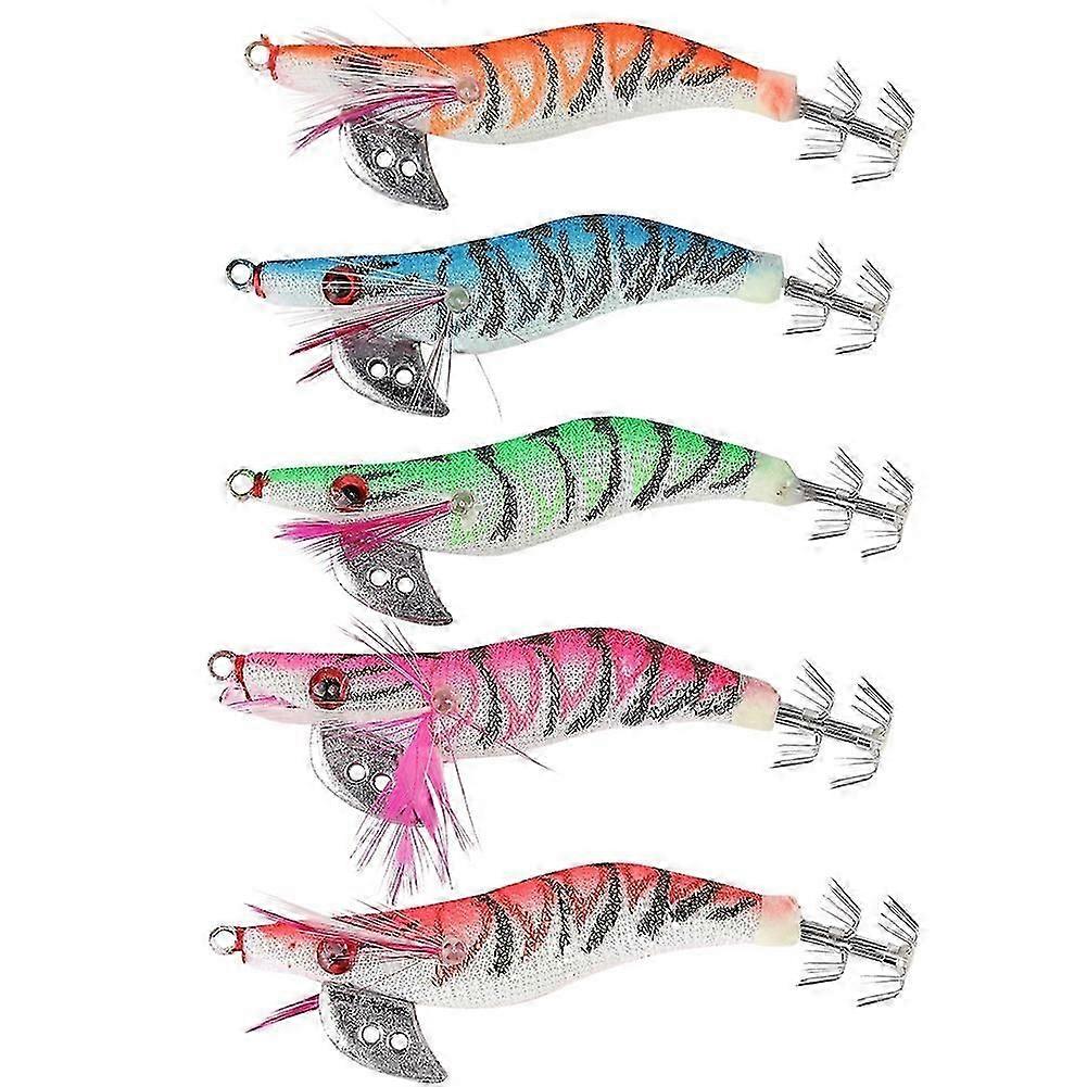 5 Pcs Mixed Color Artificial Luminous Shrimp Fishing Lures Hook Plastic Fishing Bait