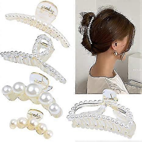 5 Pcs Large Pearl Hair Claw Clips White Black Hair Clips Thick Long Hair Jaw Clips Barrettes Hair Accessories