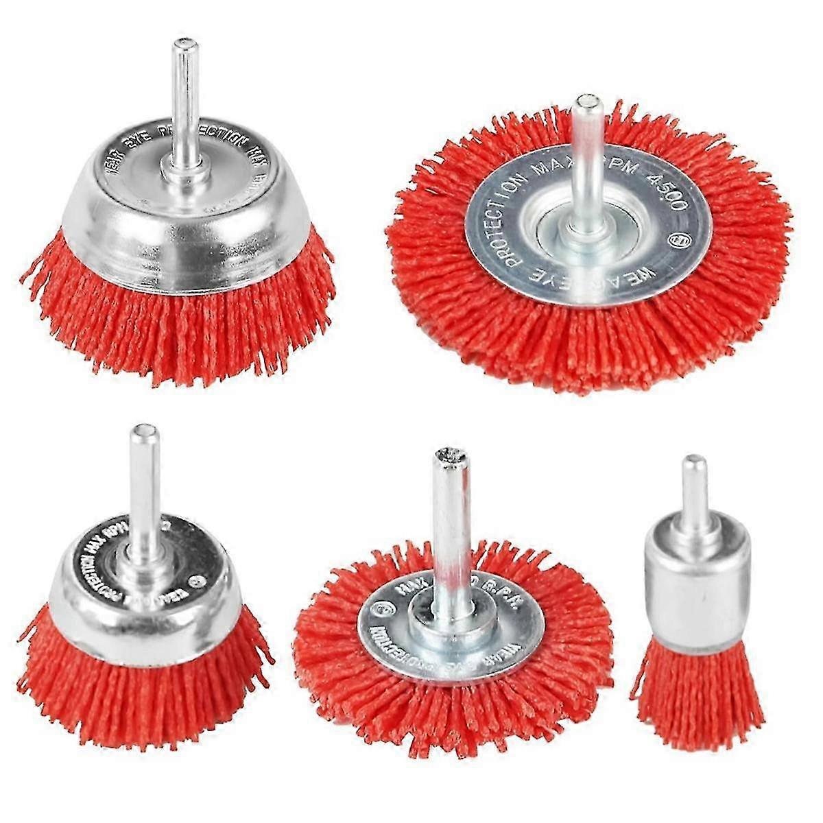 5 Pcs Nylon Filament Abrasive Wire Brush Wheel Cup Brush Set With 1/4inch Drill Shank, Nylon Set , Red