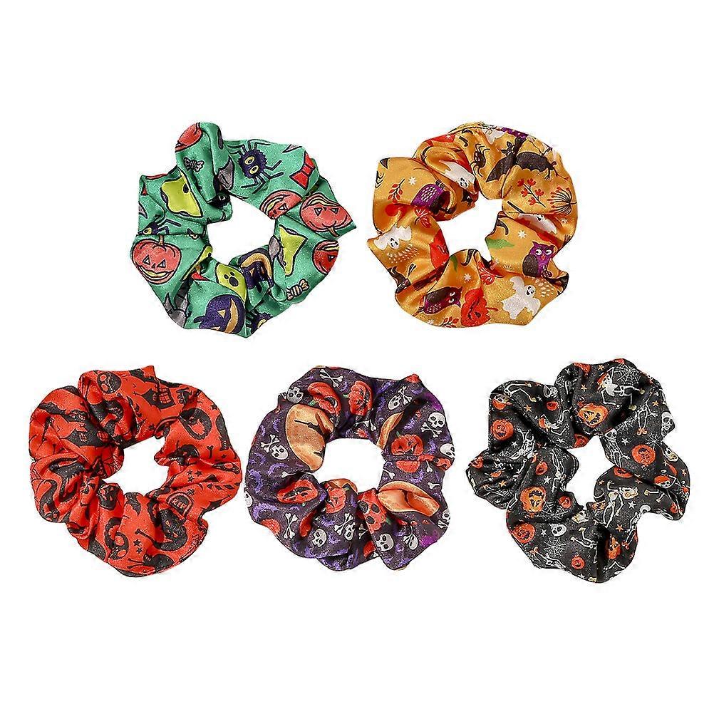 5pcs Halloween Scrunchies Ponytail Holder Hair Ornament Halloween Theme Hair Tie