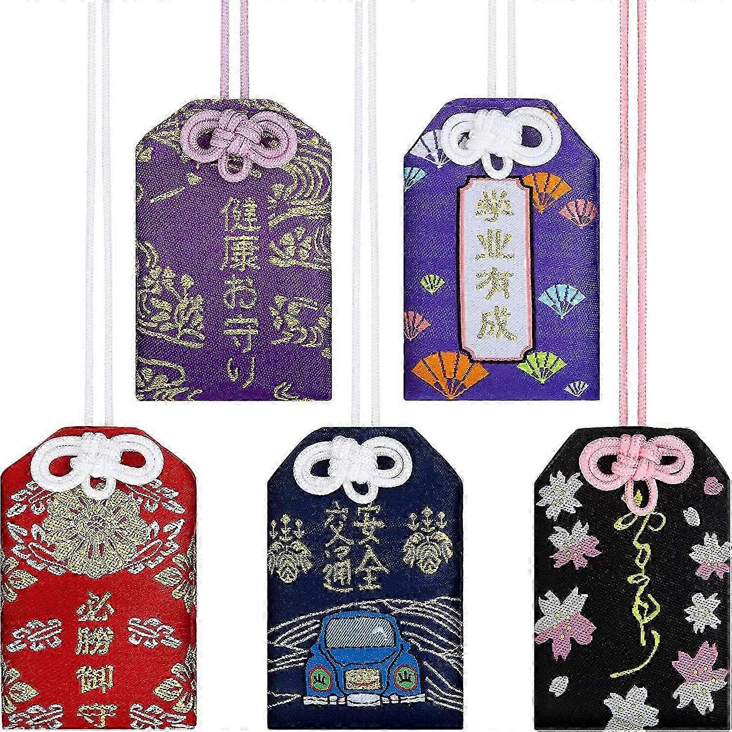 5 Pieces Japanese Omamori Sachet Lucky Amulet Charms for Health/Education/Love/Success/Traffic Safety, 5 Styles