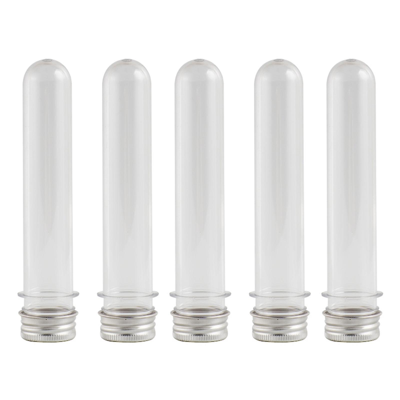 5pcs 40ml Test Tube Bottles Transparent Glossy Leakproof Multi-purpose Reusable Sample Container Metal Cap Lab Test Tubes Sample Vials For Wedd