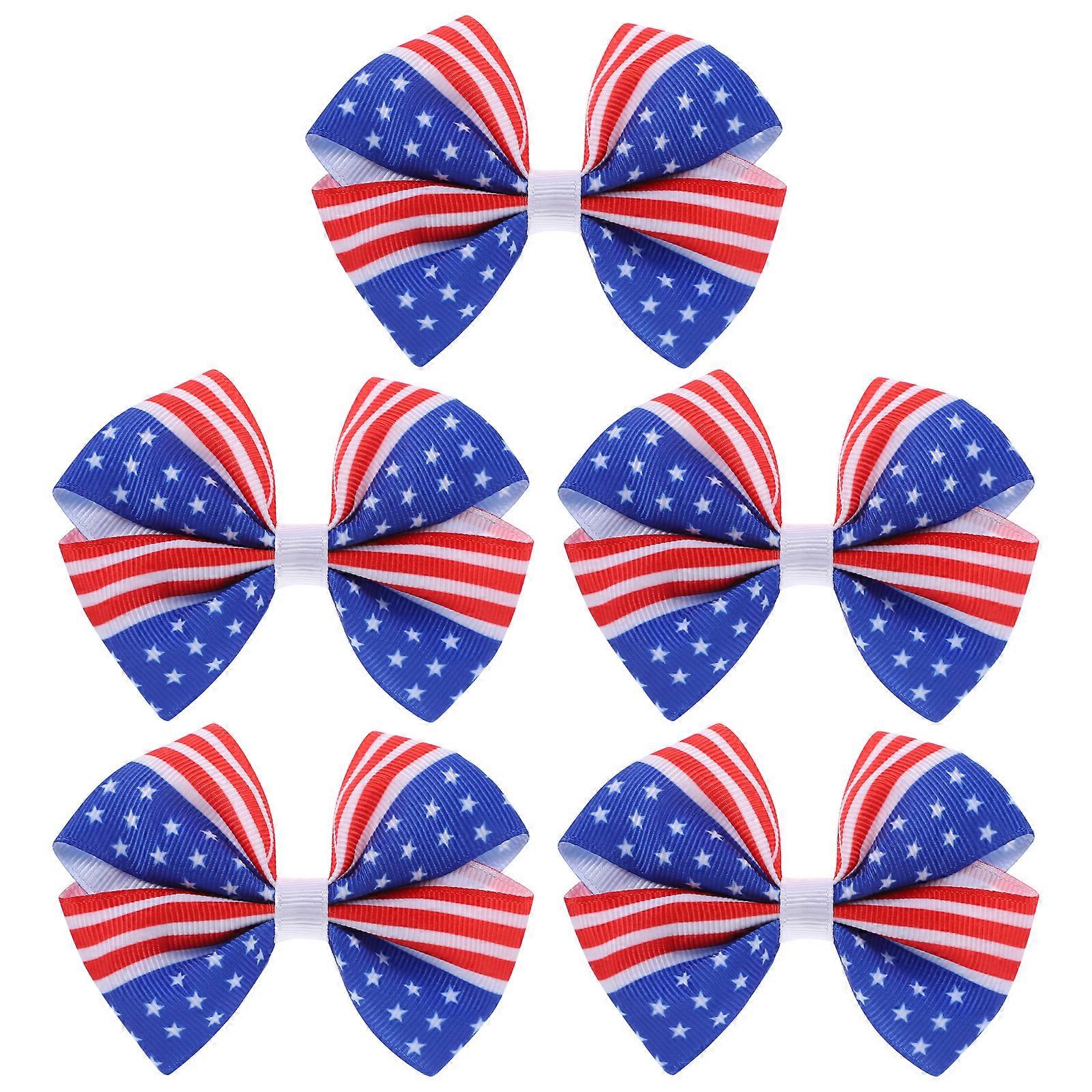 5pcs Bowknot Hairpins America Flag Stars and Stripes Hair Clips Kids Barrettes